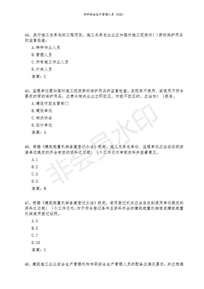 三)专职安全生产管理人员(C类)