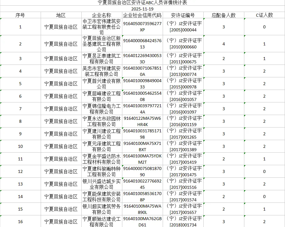 近日,宁夏住建厅发布《关于部分建筑施工企业专职安全生产管理人员考核合格证书(C证) 数量未达到要求整改的公告》。