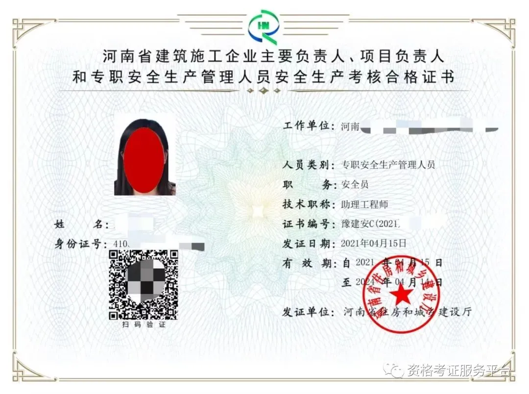 (专职安全管理员C证展示)