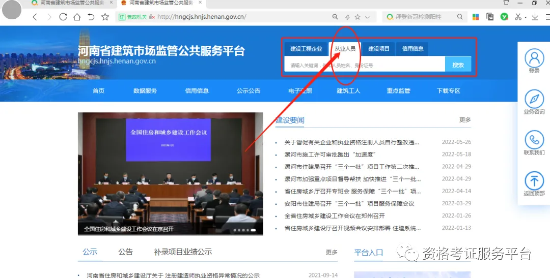 方法二:个人用户登录河南省政务服务网(https://www.hnzwfw.gov.cn/),点击“切换地区/部门”,选择“郑州市”,选择“郑州市政务服务网厅”,点击右上角“姓名”,选择“安管人员证书”下载。