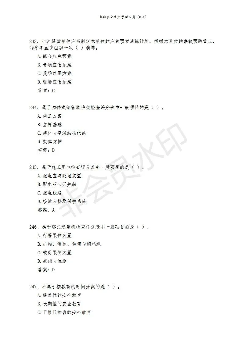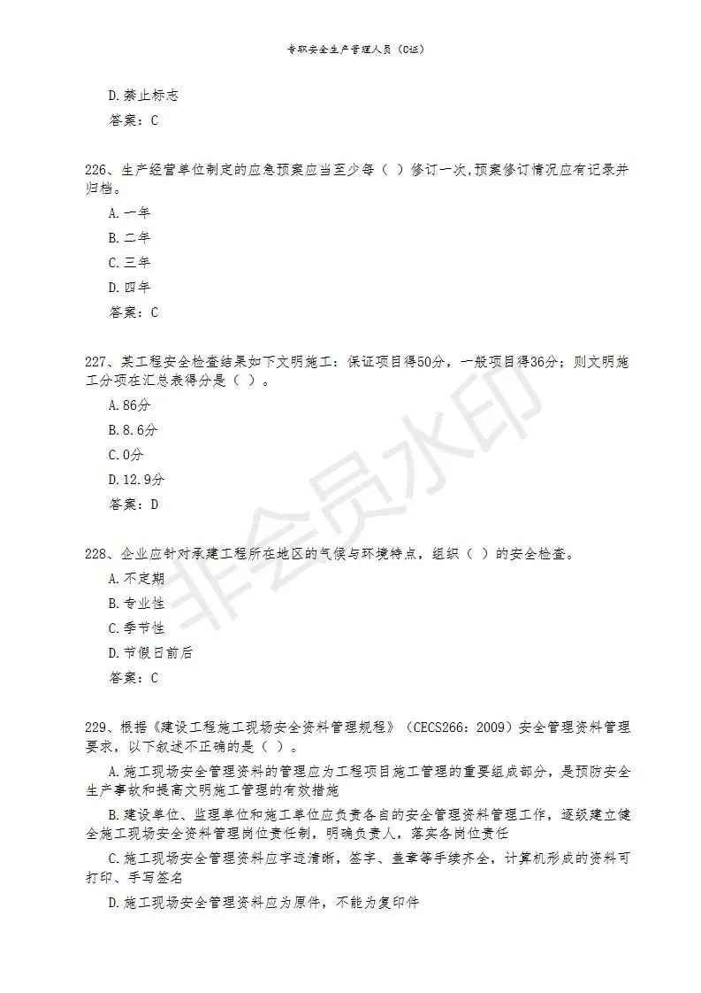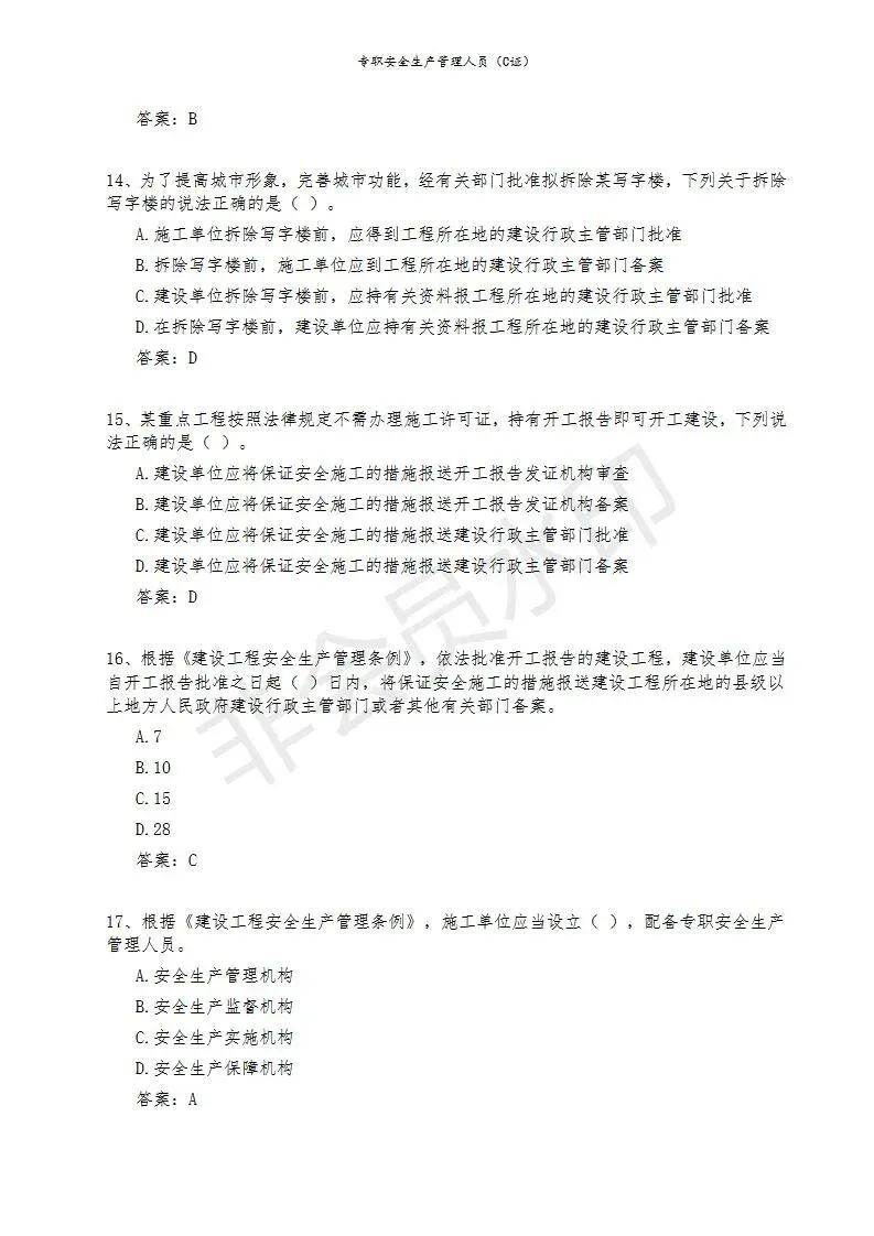 三)专职安全生产管理人员(C类)
