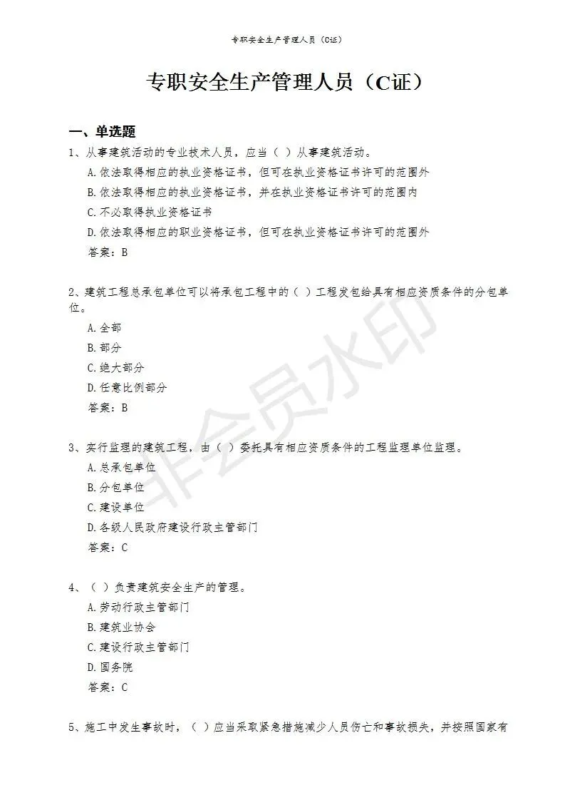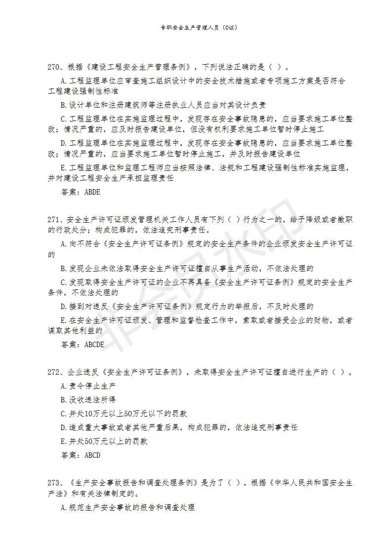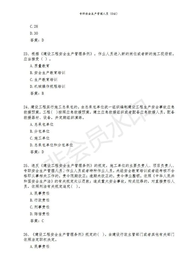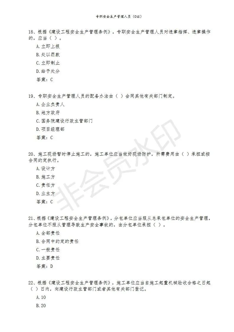 三)专职安全生产管理人员(C类)