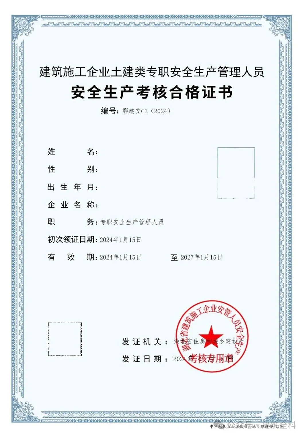 1、湖北省建筑安管人员证书申请表