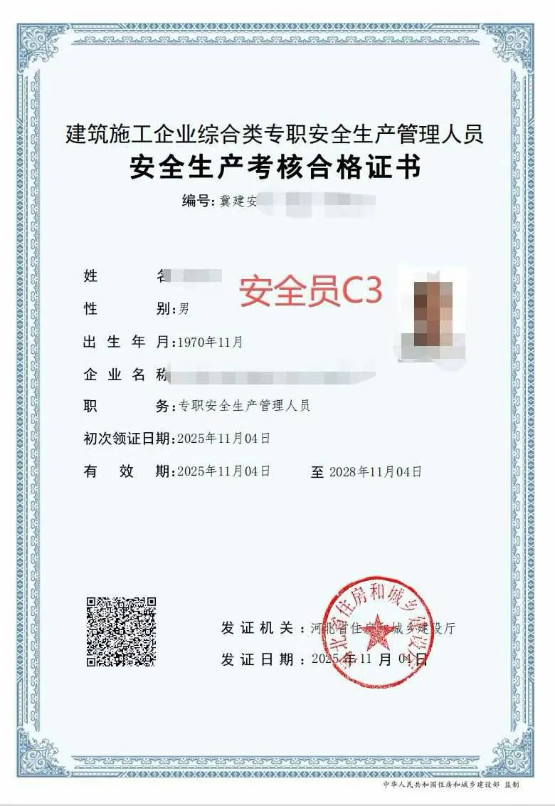 合规刚需:住建部强制要求,无证企业面临处罚或停工风险。 职业赋能:持证人员可参与企业安全管理、项目投标、资质申报等关键环节。 行业认可:证书全国通用,是建筑行业安全管理能力的权威证明。