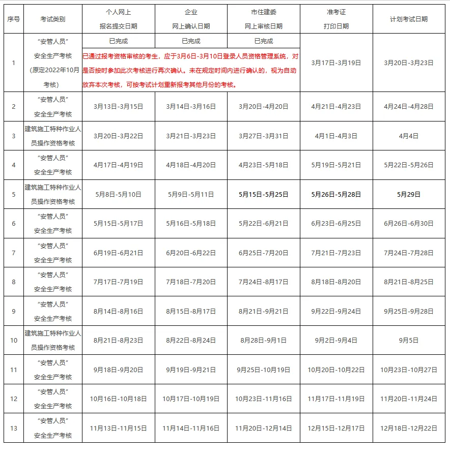 北京市住建委发布2023年建筑安全员考试计划,内容如下: