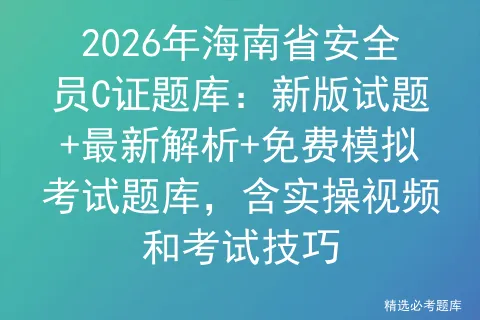安全生产模拟考试一点通平台发布海南省安全员C证考试题库,提供新版试题、最新解析、免费模拟考试题库,包含理论考试、实操考试视频、复审模拟考试及考试技巧,助力备考报名。
