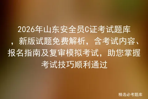 安全生产模拟考试一点通平台发布山东省安全员C证考试题库,提供最新试题、考试资料、实操视频及模拟考试题库,涵盖理论考试和操作证考试内容,免费试题解析助力考生高效备考,轻松应对复审考试。
