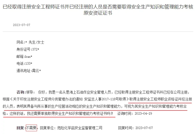 相关问题,应急管理部公众平台也回复了“取得注册安全工程师职业资格证并经注册的人员,表明其具备与所从事的生产经营活动相应的安全生产知识和管理能力,可视为其安全生产知识和管理能力考核合格。不需要再单独取得安全生产知识和管理能力考核证书”。