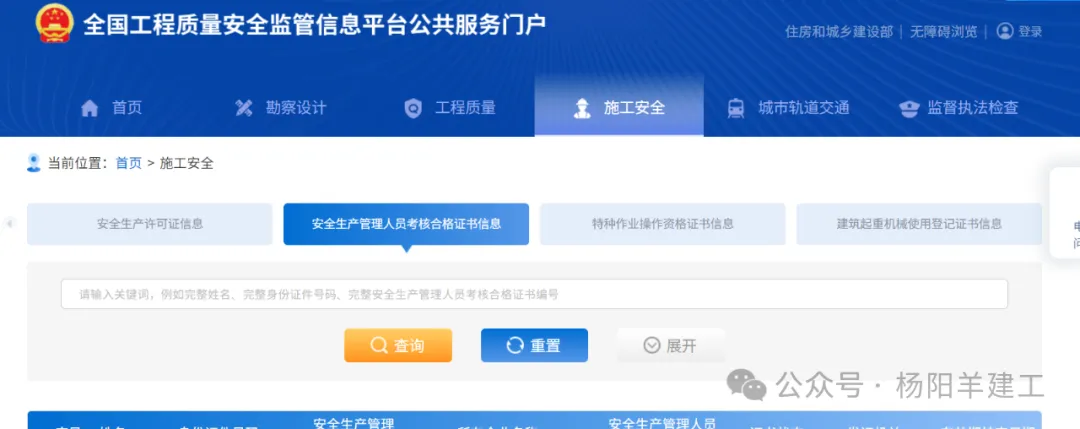 4.全国工程质量安全监管信息平台公共服务门户,不仅可以查询安全员ABC,还可以查询住建厅特种作业人员。