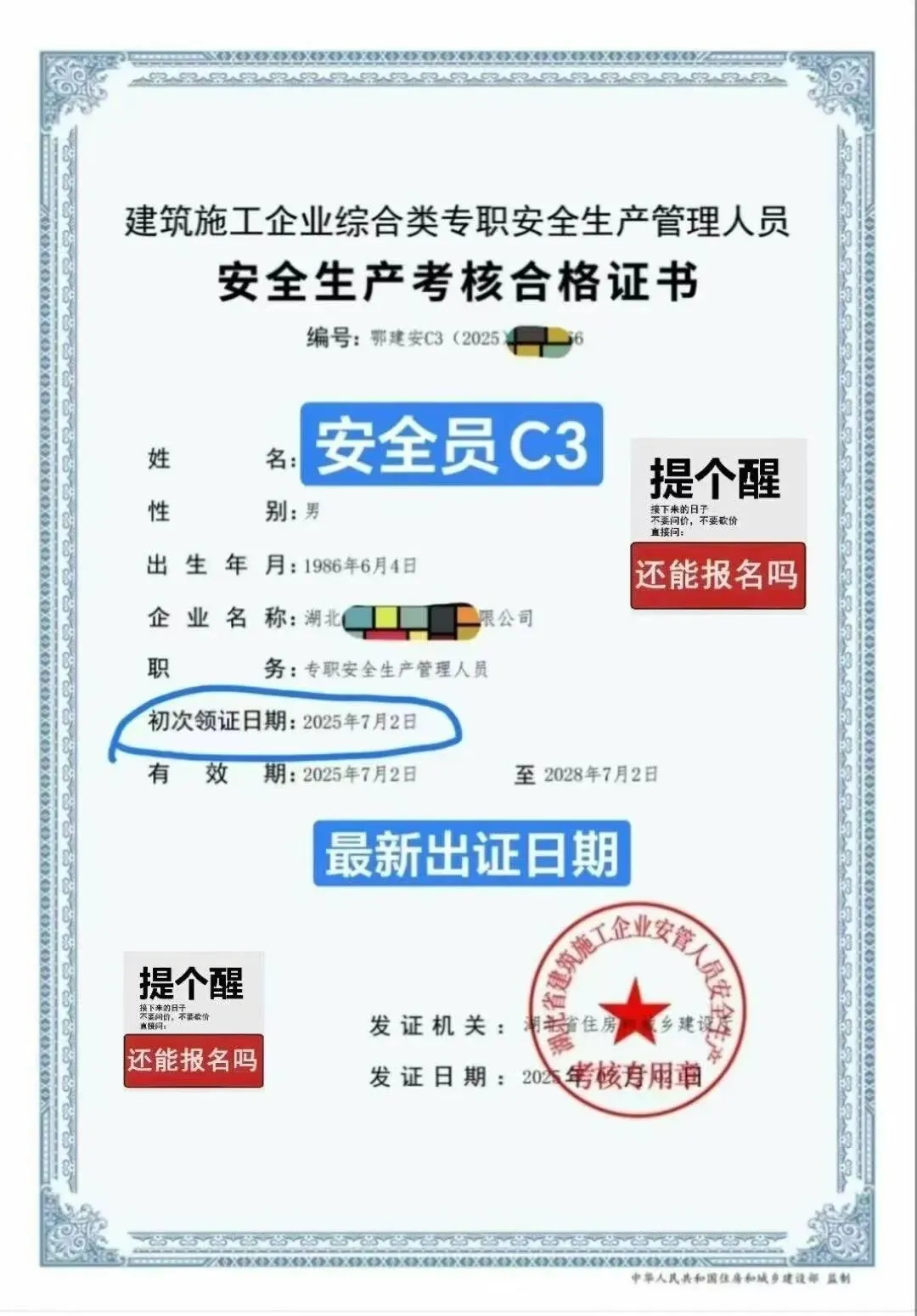 住建厅安全员C证全称建筑施工企业专职安全生产管理人员安全生产考核合格证书,是建筑行业专职安全管理人员上岗的法定资质,由各地住建厅(住房和城乡建设部门)组织考试并颁发!安全员C证,属于“三类人员”证书,区别于A证(企业负责人)、B证(项目负责人),C证专用于施工现场专职安全生产管理岗位。