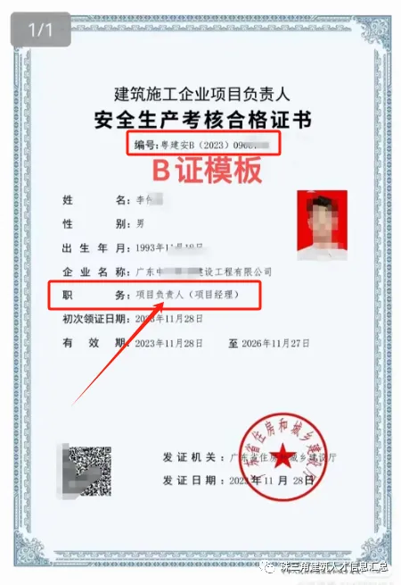 🟧B证是用于项目,项目经理必须要有这个证,而且安全生产许可证的新办与延期也要用到;