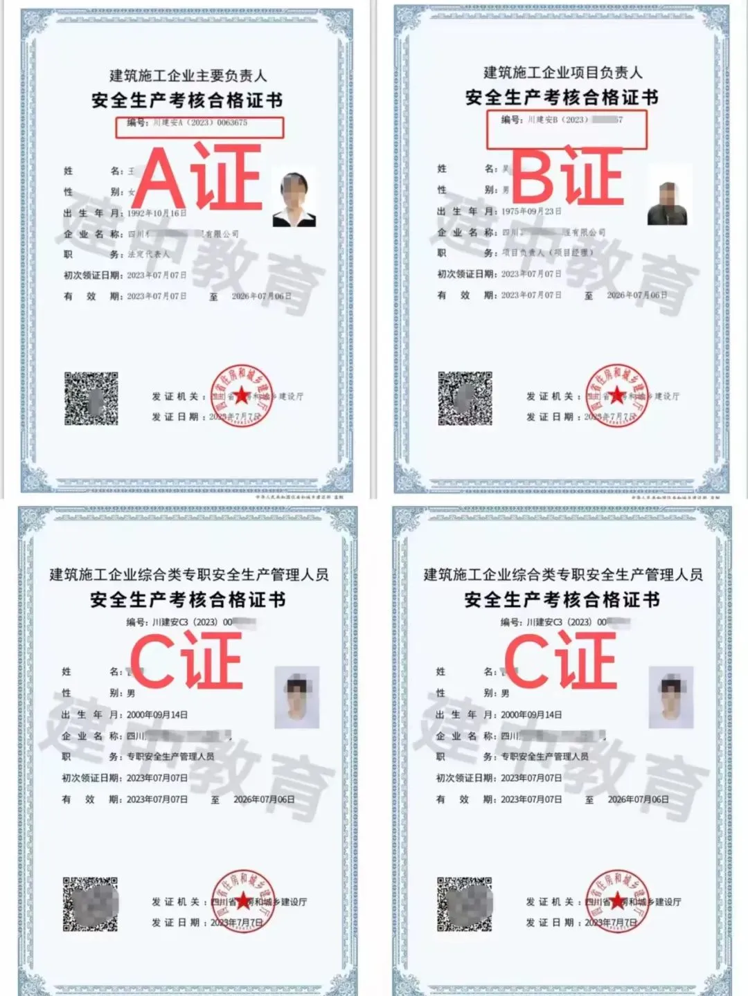 C证是企业施工一线安全生产管理人员考取的证书