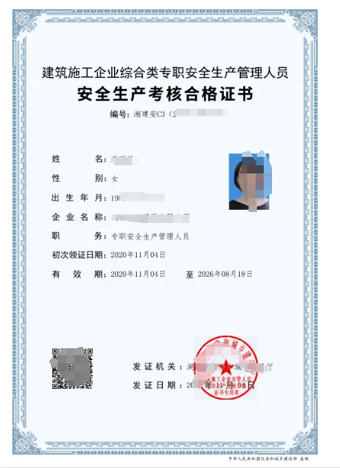 C证(安全生产管理人员):专职安全员安全生产考核证,安全员必须取得C证才能在项目上担任专职安全管理人员。