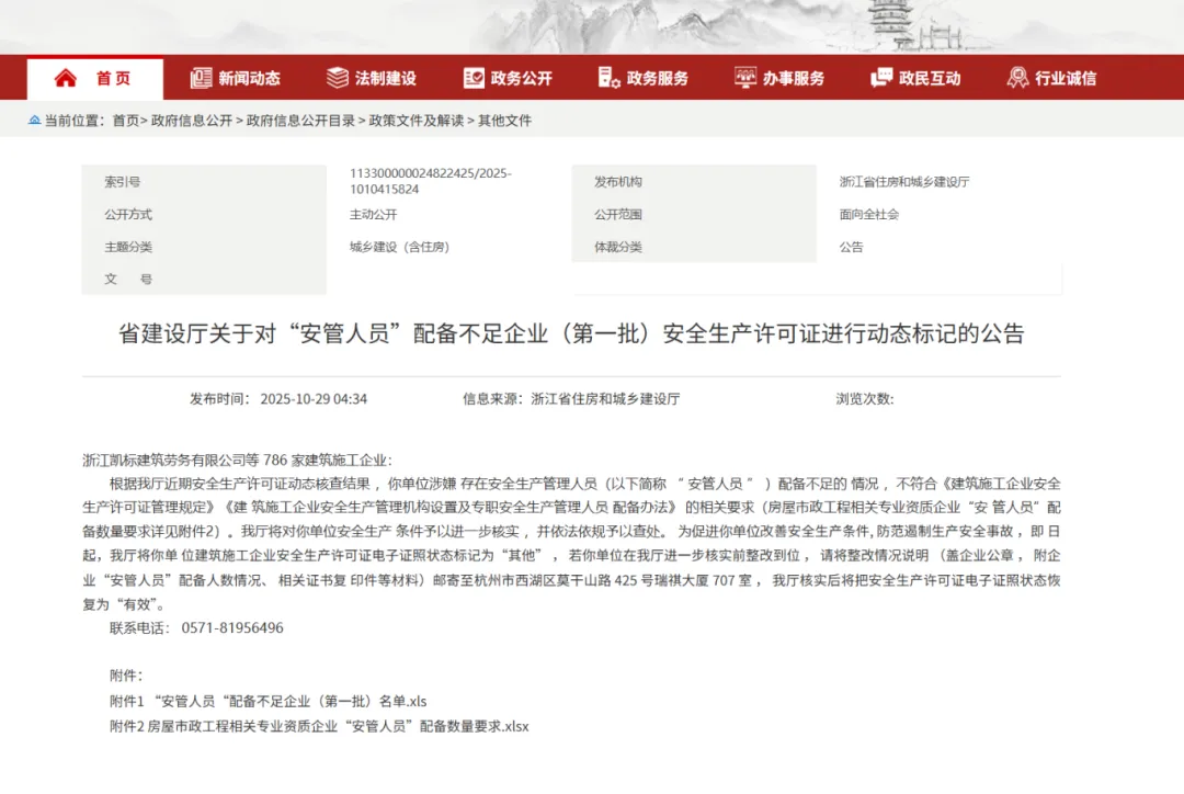 浙江:786家企业因安全员缺配,安许证被标“其他”,整改不到位直接查处。