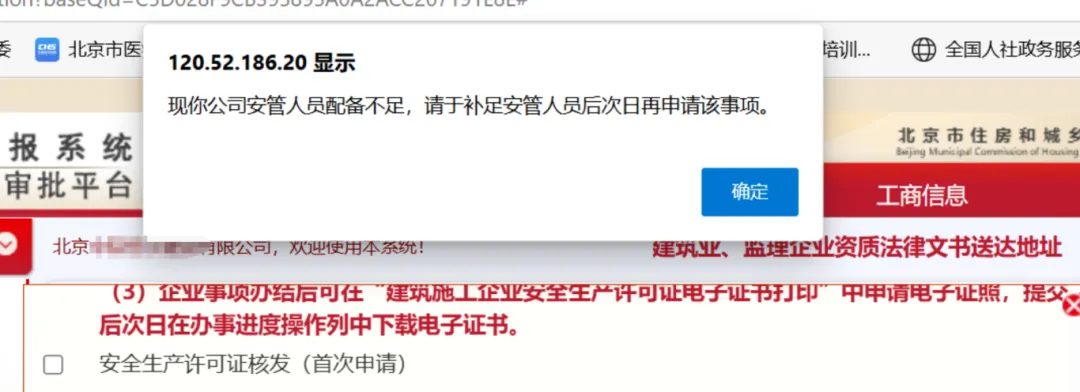现在北京建筑企业办理相关事项时,系统会直接弹出“安管人员配备不足”的提示,缺证就无法继续申请业务,这是住建部新规在本地落地的实际信号,比“后续核查”更直接地卡了企业的经营流程。