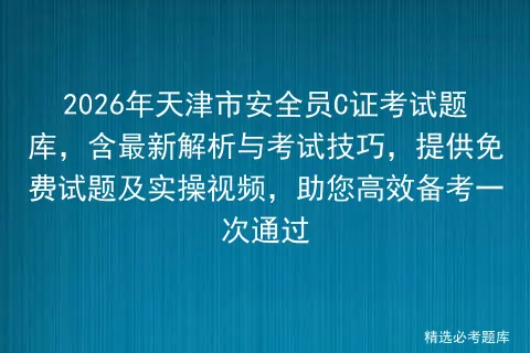 安全生产模拟考试一点通平台发布2026年天津市安全员C证考试题库,涵盖最新试题、模拟考试、复审内容及考试资料,附带详细解析和考试技巧,支持在线练习,帮助考生全面掌握考试内容,顺利通过理论及实操考试