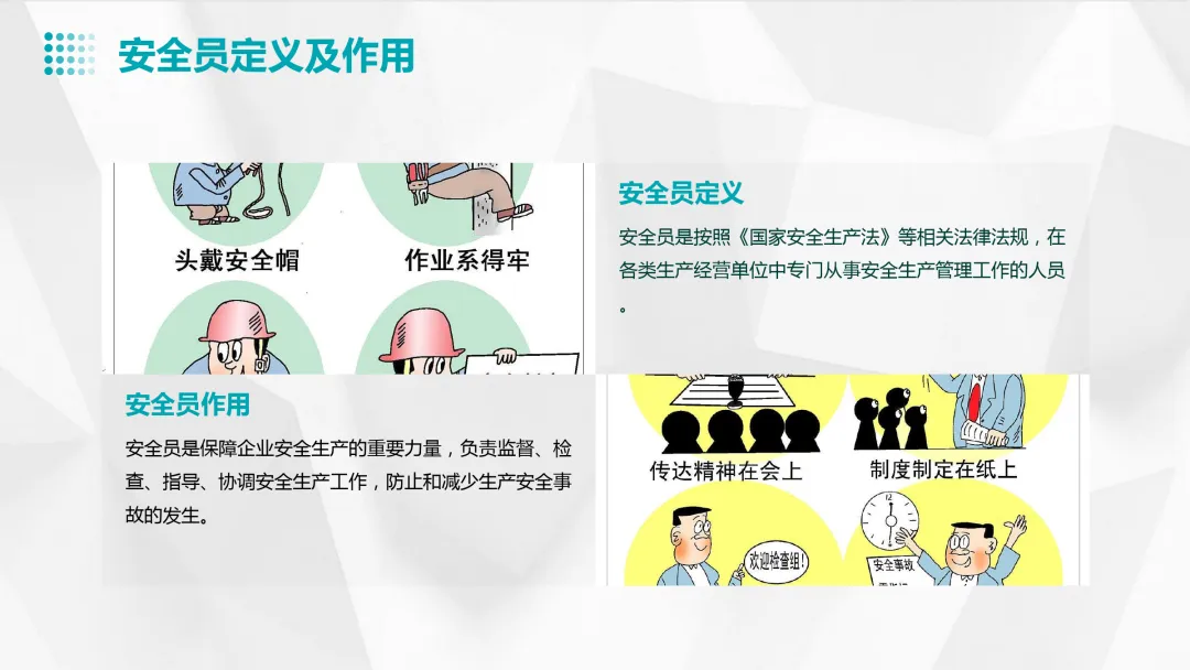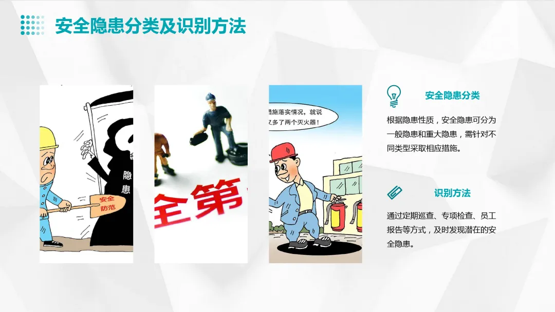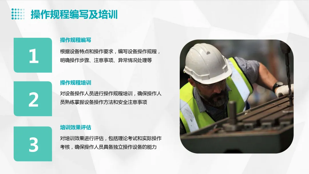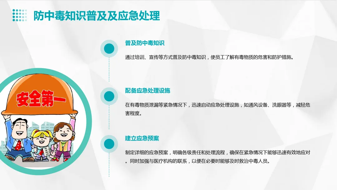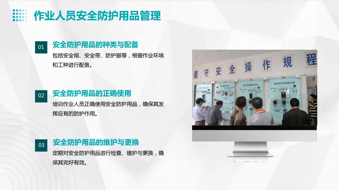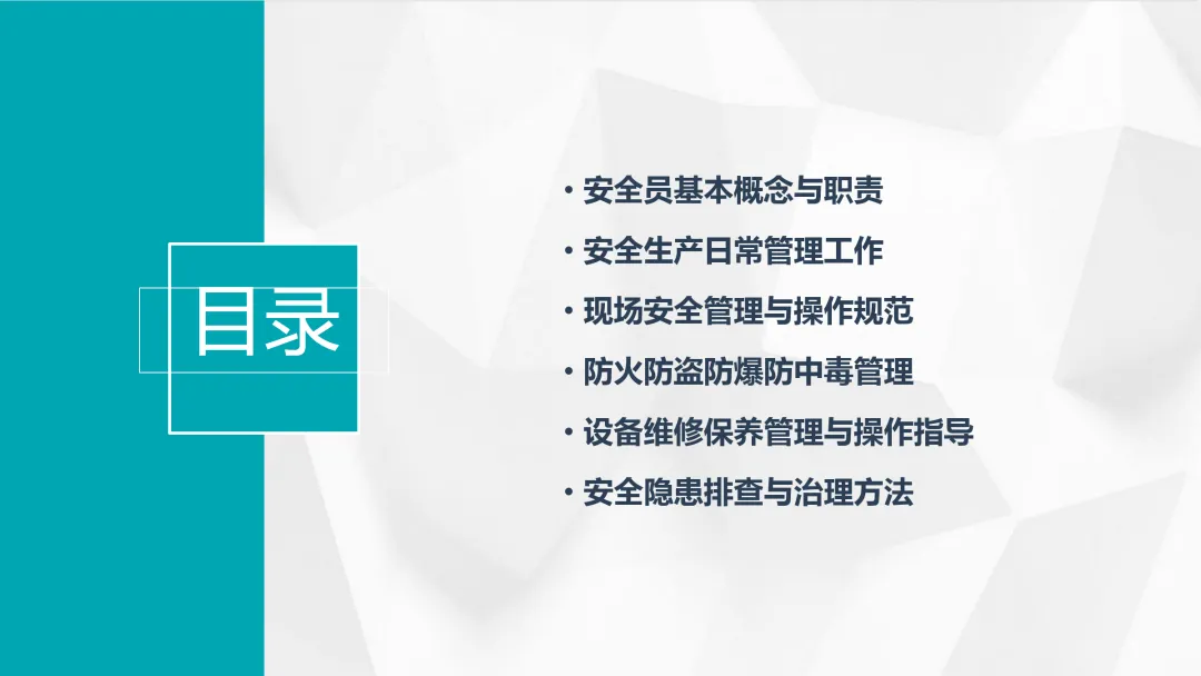 法规、安全操作规程、事故案例分析、个人防护用品的使用、应急救援知识等。