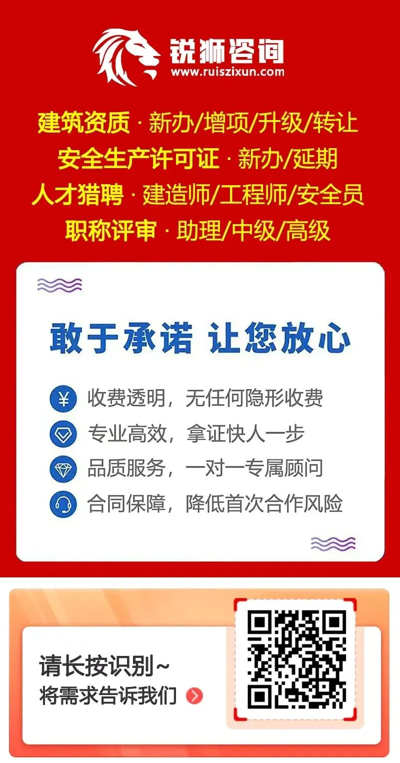 如需进一步了解建筑资质/安全生产许可证等具体城市差异化的办理要求或办理细则,欢迎在评论区留言,我们将具体回复您的疑问!如需办理服务,可以直接识别下方二维码,提交您的业务需求!